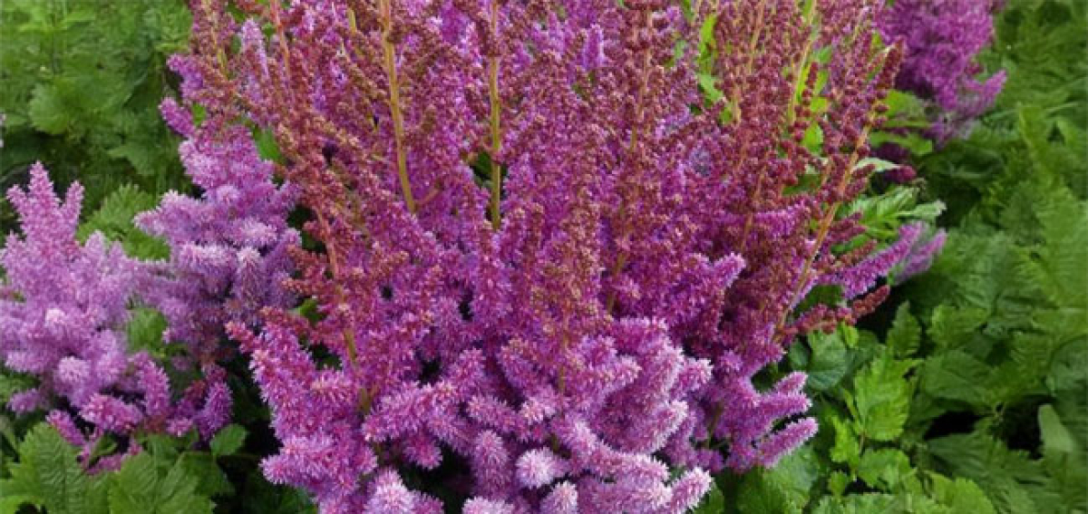 Deciduous, soft perennial with dainty foliage and large plumes of dramatic flowers; perfect for shaded damp spots, pairing well in amongst evergreen ferns. The ‘Visions’ series with their wide range of colours are a personal favourite!