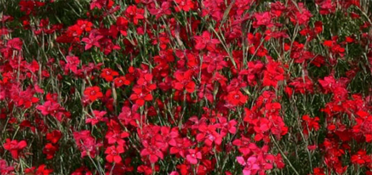 An evergreen perennial forming a mat of green foliage, with clusters of cerise, deep crimson, pink, or white flowers May to July. A truly hardy plant that thrives in full sun to half a day. Some varieties include Dianthus deltoides ‘Albiflorus’, ‘Arctic Fire’, ‘Brilliant’, ‘Flashing Lights’, and ‘Rosea’.