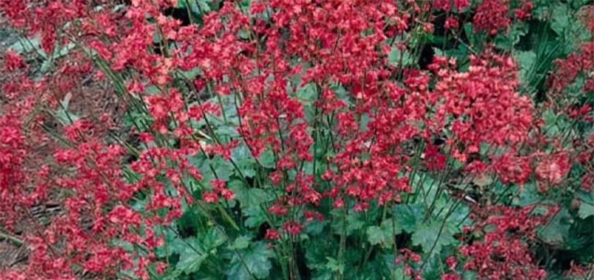 Evergreen perennial with sprays of small, vibrant coral flowers that float like clouds above mounds of dark green foliage. A fantastic perennial for sun or shade that provides pollen for hoverflies and bees.
