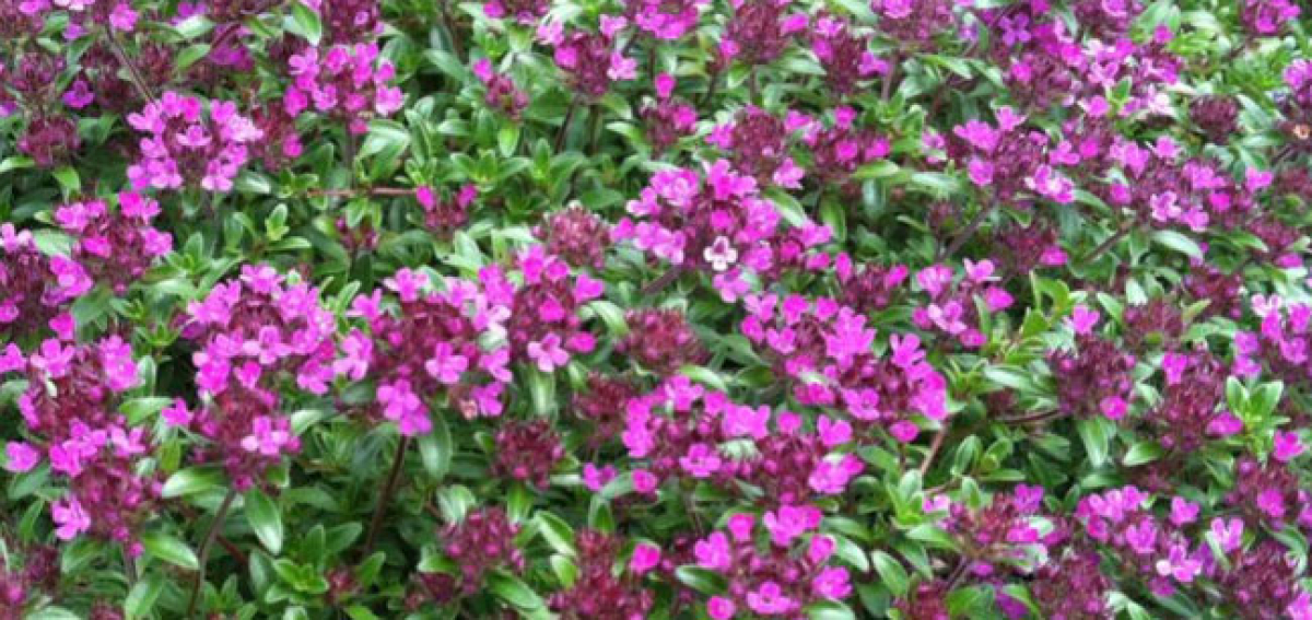 Aromatic groundcover covered with white flowers from June to August. Loved by pollinators and people alike, this groundcover is also edible. Also available in pink and purple varieties.