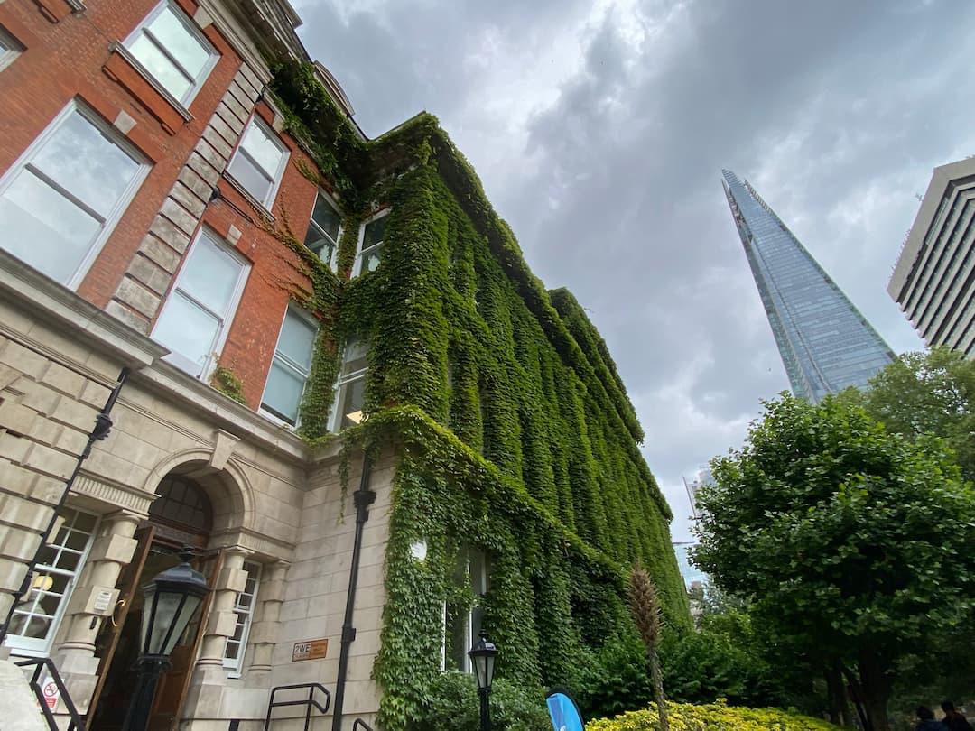 - Direct Greening: Climbing plants grow naturally up walls or structures. (Image Virginia creeper Guys Hospital)
