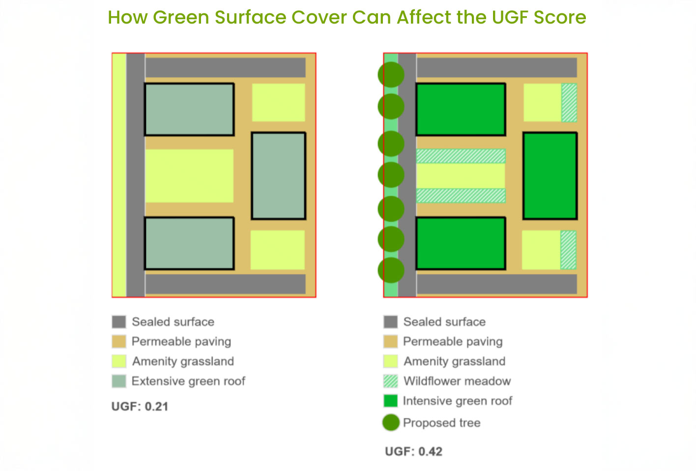 The UGF is a design-and-site-based greening score, not a substitute for Biodiversity Net Gain (BNG), ecological surveys, or arboricultural assessments. Planners usually expect UGF to be used alongside BNG, SuDS assessments, and other environmental submissions. Therefore, a scheme’s cooling, drainage, and biodiversity outcomes are considered together.