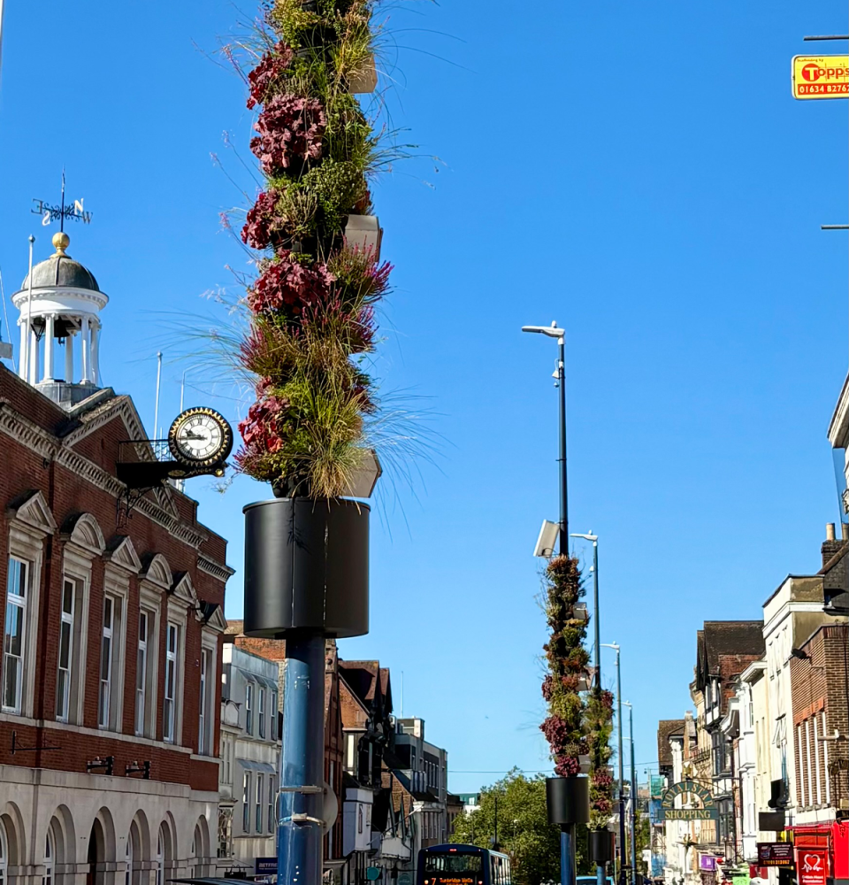 Scotscape has delivered a major new Living Pillars® project in Maidstone town centre, installing 19 vertical gardens across key streets to bring vibrant greenery and pollinator habitats into the heart of the town.